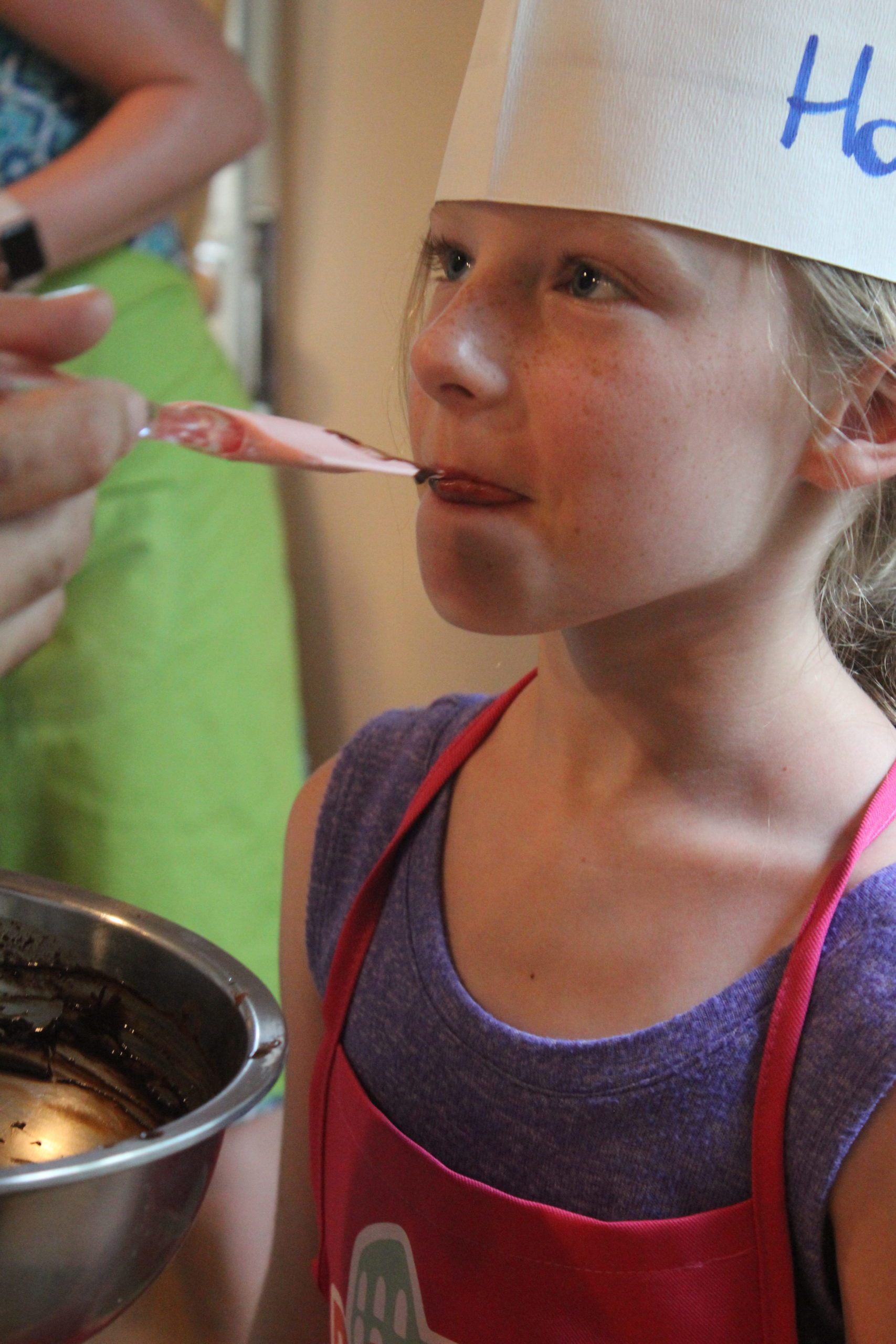 A pint-sized chef enjoys the frozen fruits of her labour.