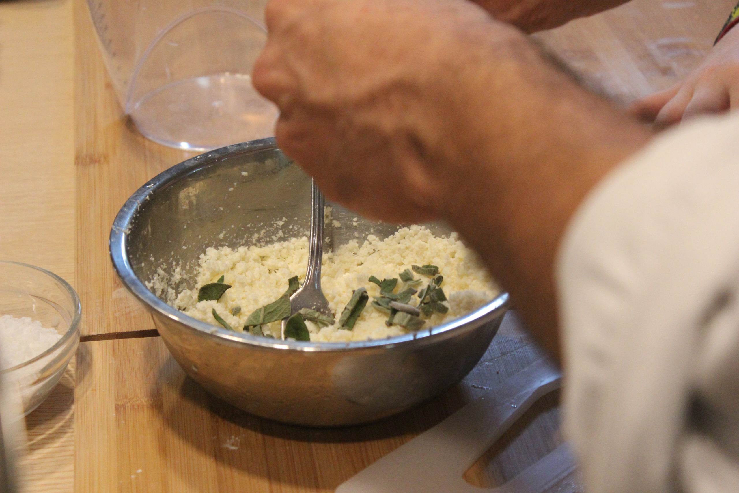 Our delicious, finished product–ricotta and sage-stuffed ravioli with a butter and sage sauce.