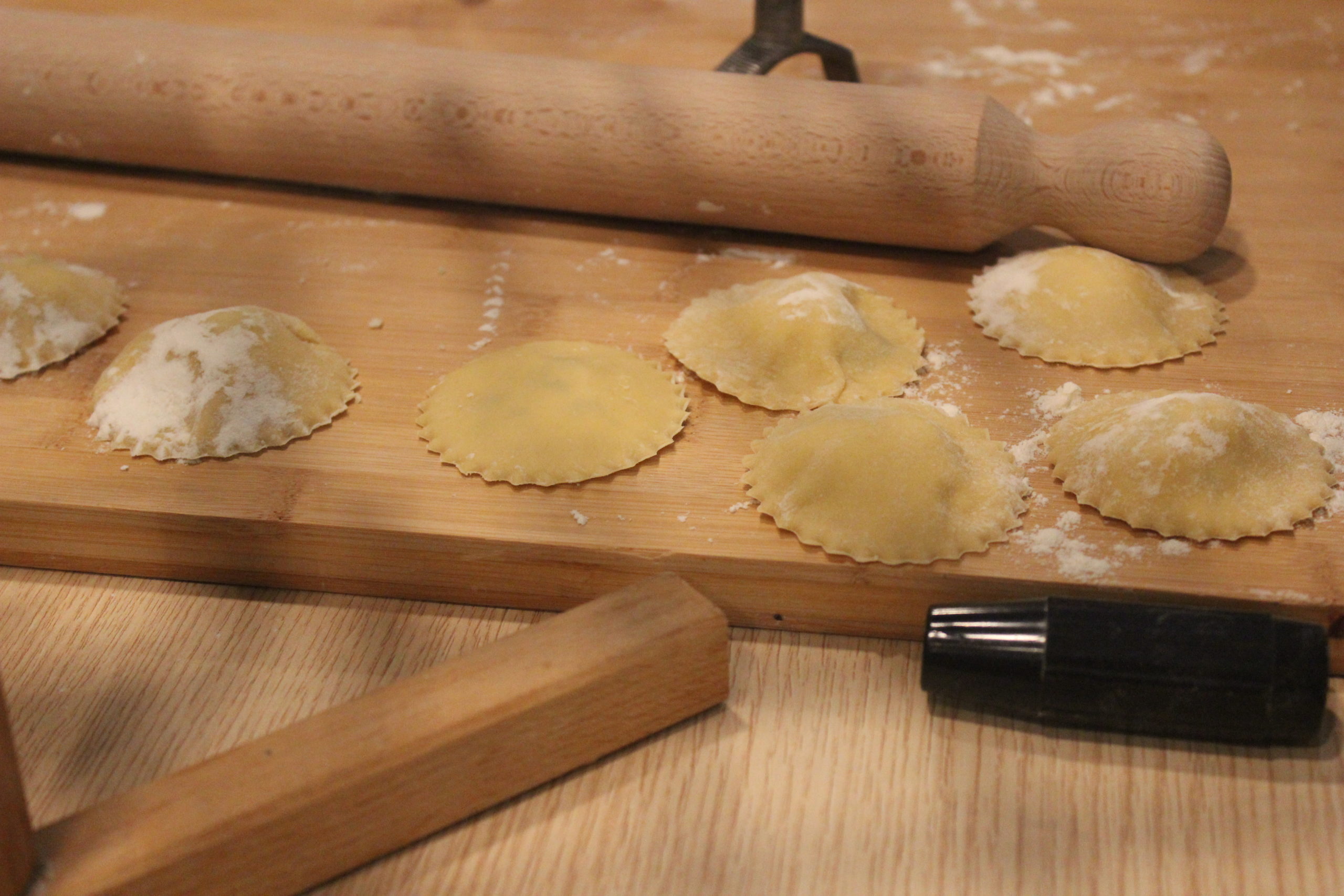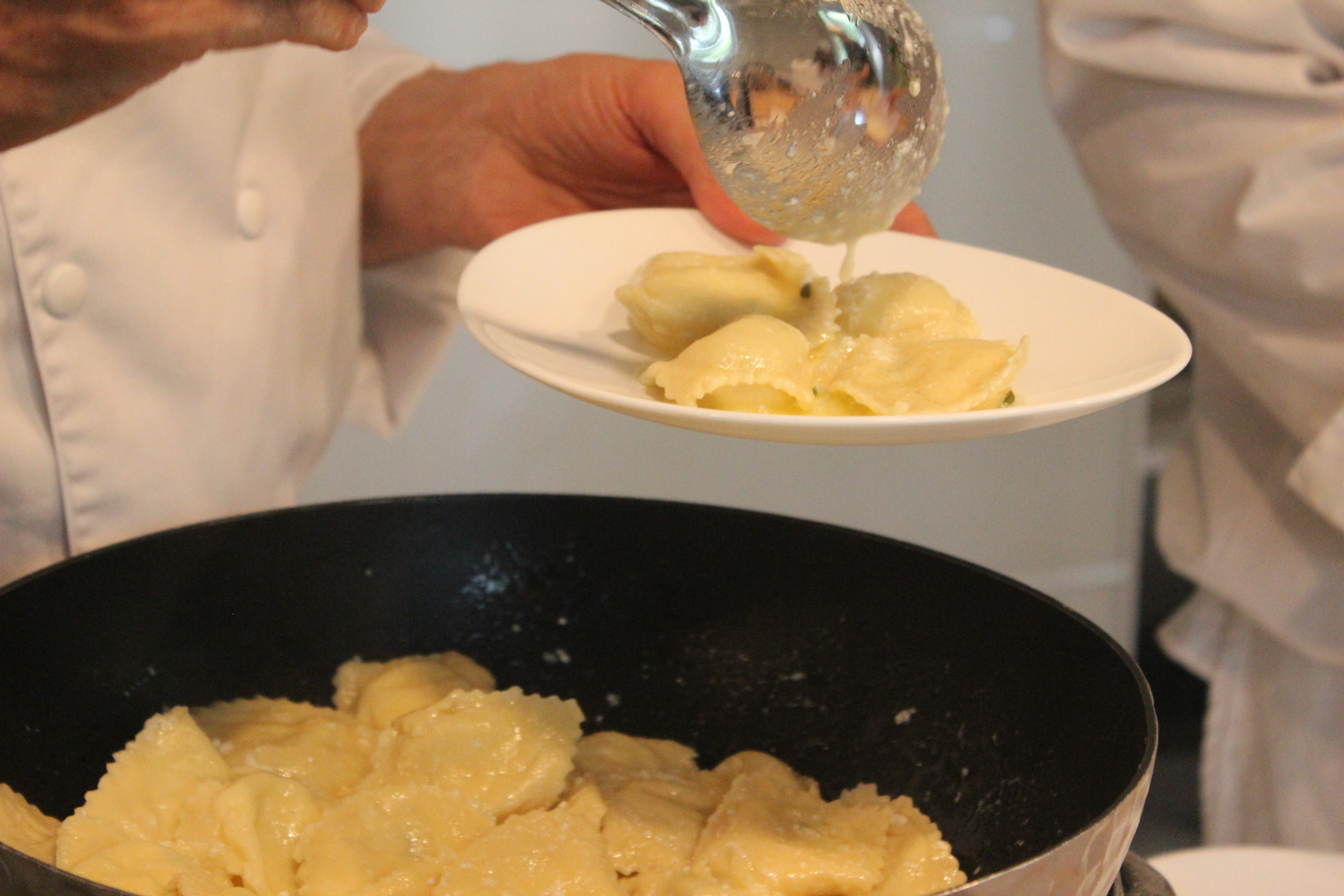 Back to the pasta. Our chefs thoughtfully taught us the fine art of rolling sheets of dough to make our stuffed pasta pillows—then five times through the pasta maker to ensure the exact thinness. They showed us how to stuff the ravioli and cut it with care. They even resisted snapping when, mistake after mistake, we finally managed to produce pockets that would pass muster. Then, eventually, our creations made it into the pot for a quick, al dente boil.
