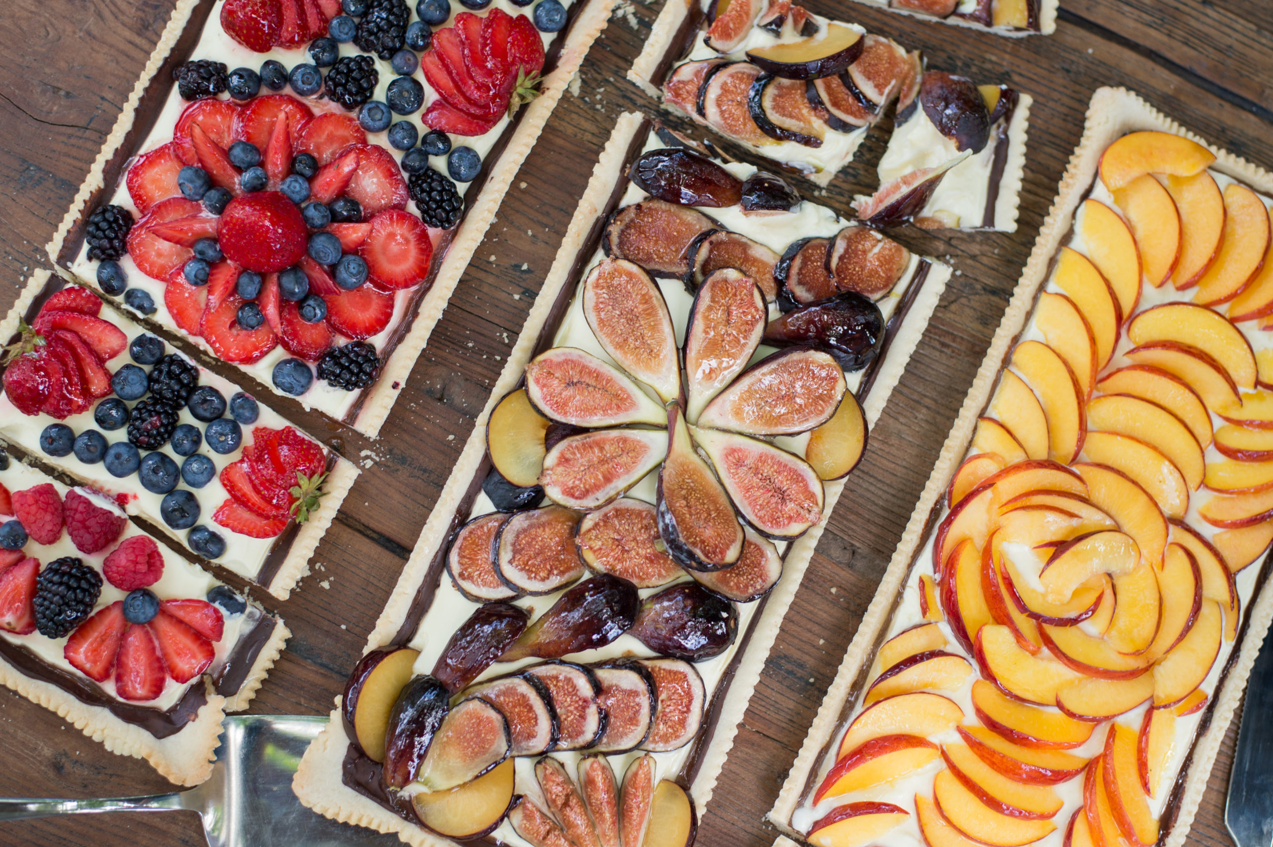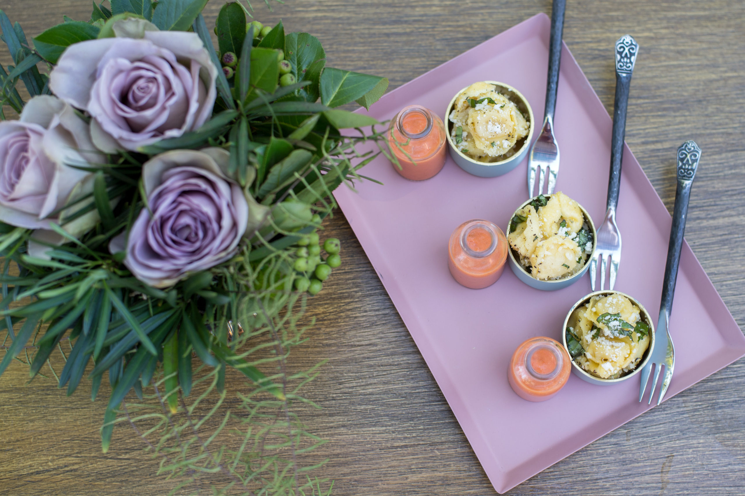 Our wildflower salad is a beauty that was made better by the last-minute addition of freshly-picked red currants found in the garden that morning. A family-style main course of Peruvian roasted chicken and potatoes with aji verde (green sauce) was the perfect rustic touch to match the theme. Dessert was another colourful feast for the senses featuring fresh-baked fruit tarts of various flavours, a summer wedding dessert we’re excited to present to our wedding couples for the 2018 season. And just wait until you see the wedding cake made by Truffle Cake & Pastry–stunning!