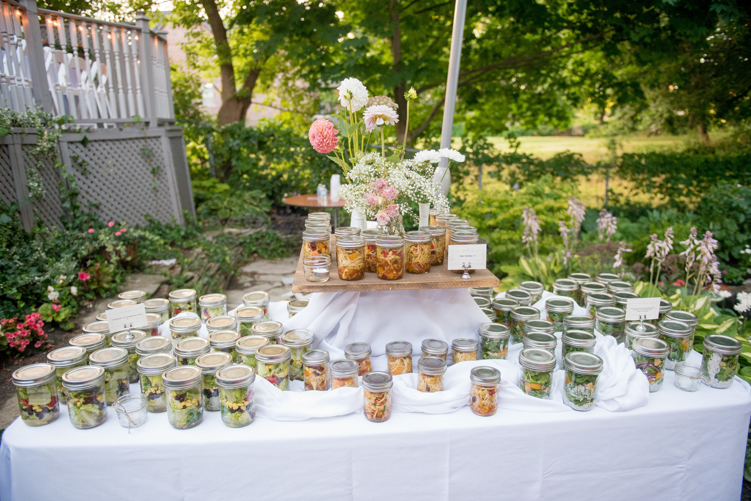 They visualized an intimate backyard barbecue with family and friends, so we designed a custom menu featuring everything from beef sliders and sweet potato fries to marinated veggie skewers, salads and a selection of perfectly-grilled meats.